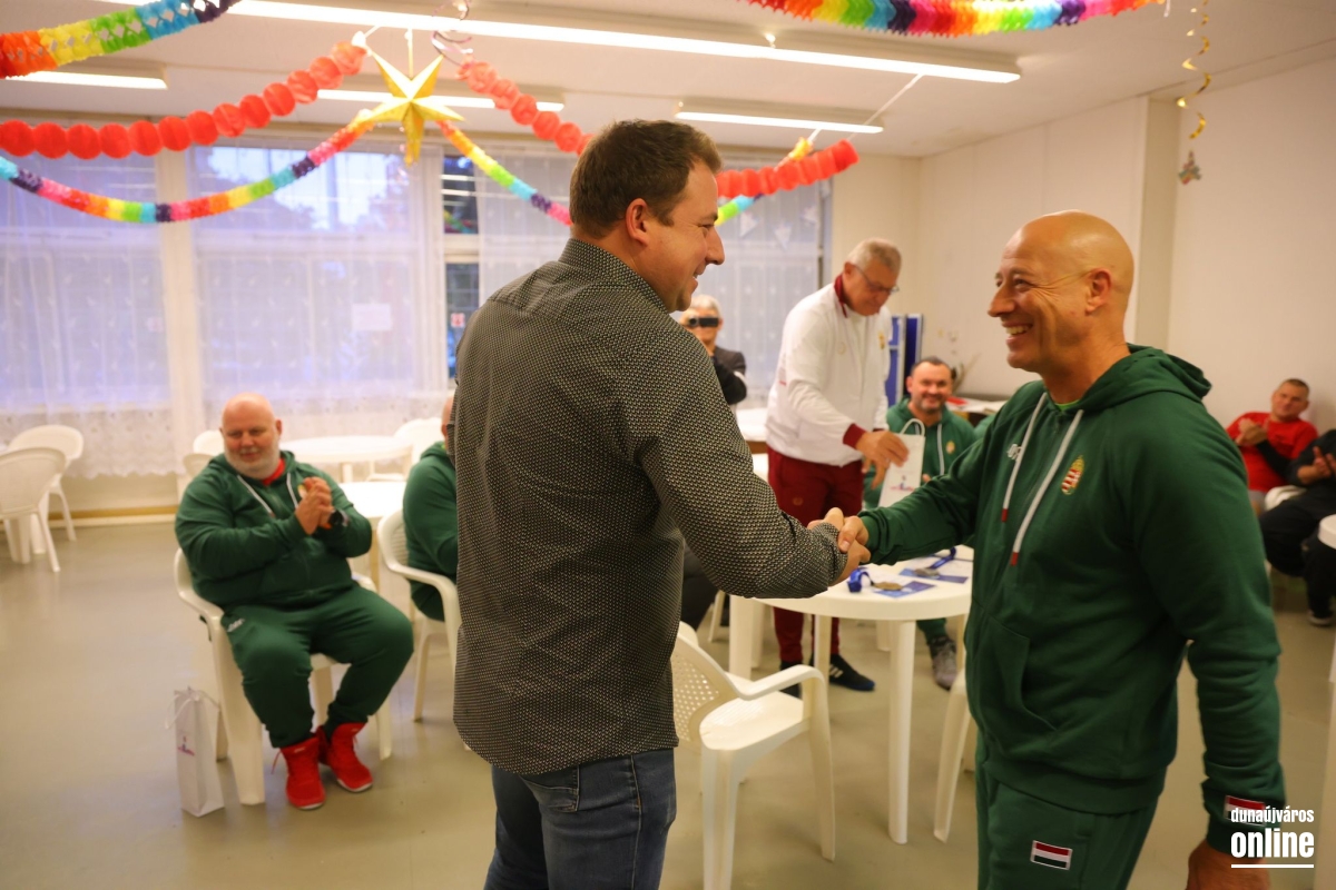 A Gurics György Birkózó Centrumban köszöntötte a közelmúltban véget ért világbajnokságokon szereplő dunaújvárosi birkózókat Barta Endre alpolgármester.